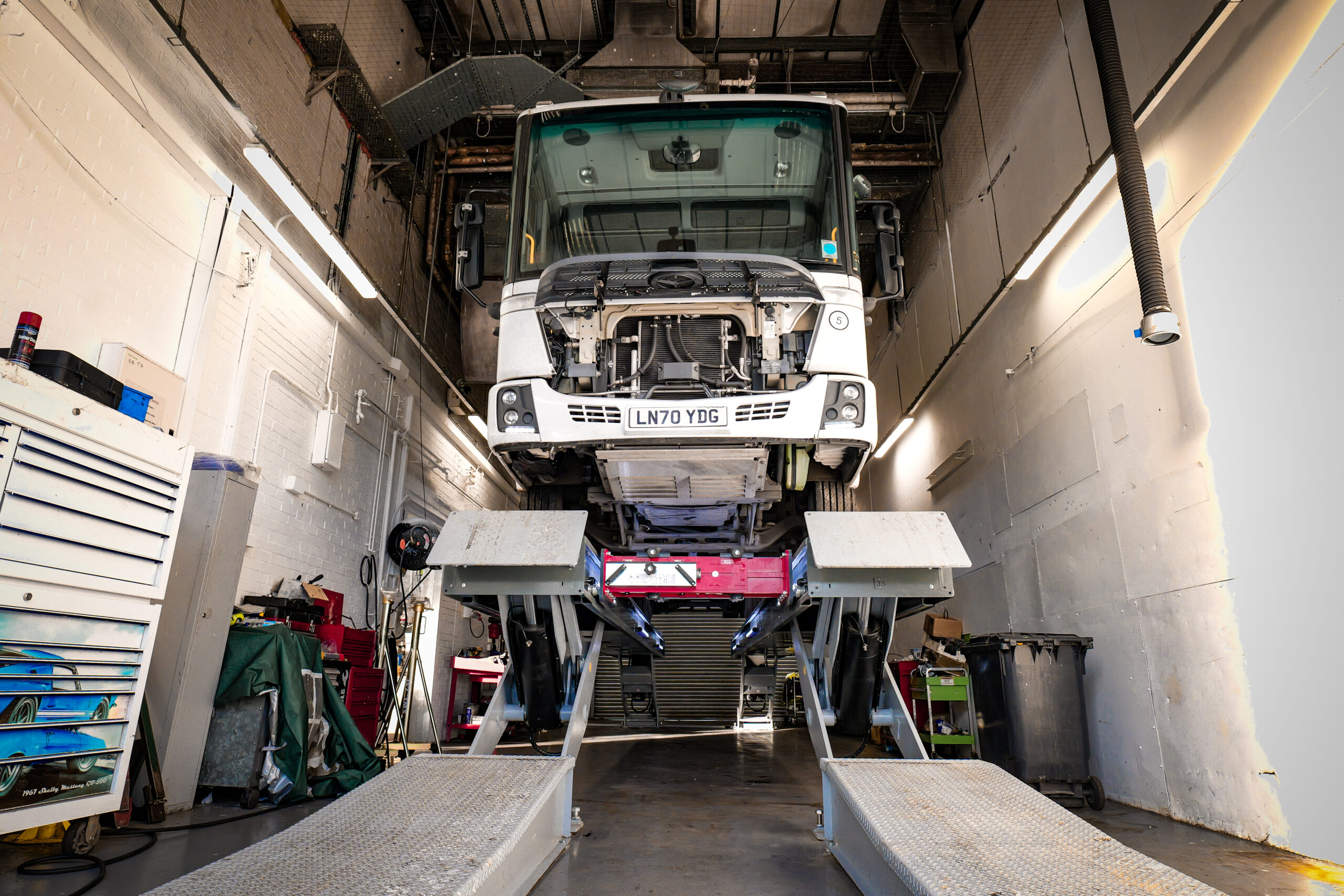 - Two Post Lift (6,500kg lifting capacity), providing an efficient solution for smaller commercial vehicles like vans and minibuses.